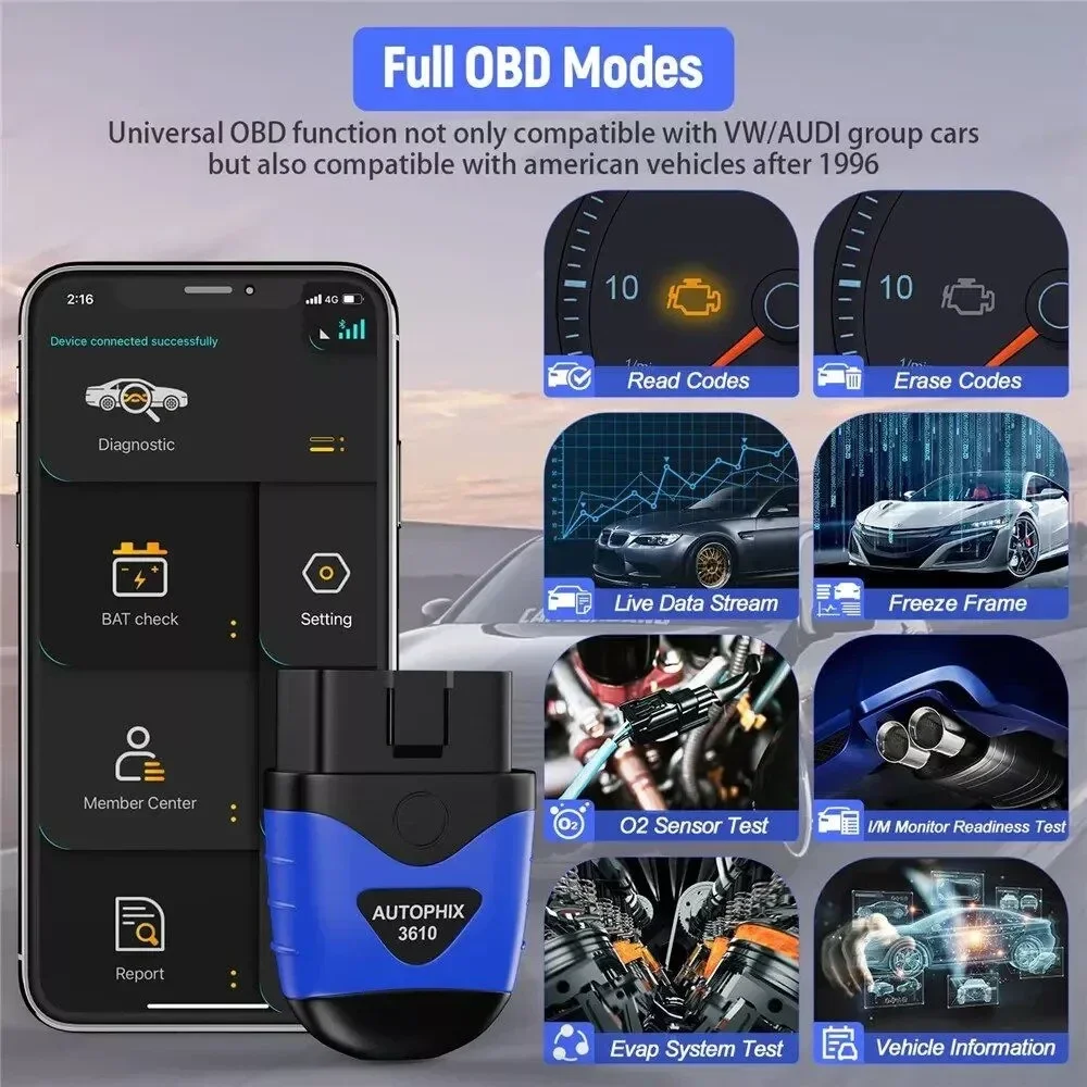 OBD2 Bluetooth Full System Diagnostic Scanner for VW, Audi, Skoda, Seat