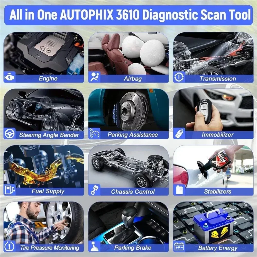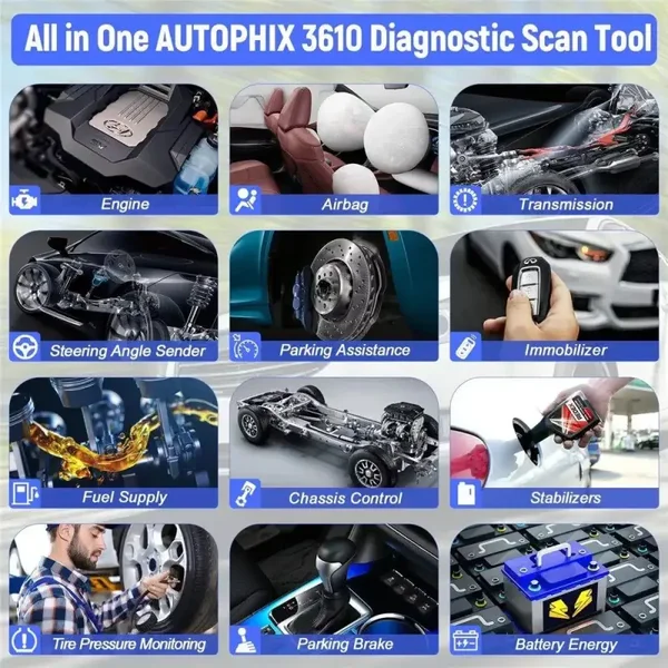 - Full-System Diagnostics: Access to all electronic systems including engine, transmission, ABS, airbag, and more, ensuring thorough vehicle checks.