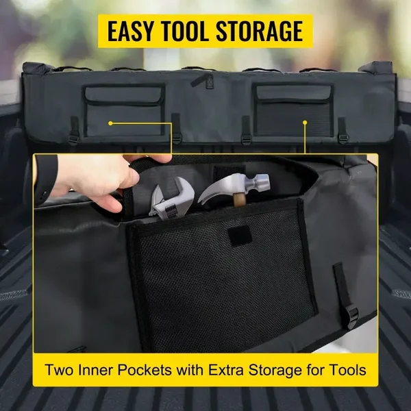 Our Tailgate Bike Pad is not just a practical accessory; it’s an essential for any cycling trip. The combination of sturdy materials and thoughtful design makes it stand out. The high-quality dual locks ensure your bikes are securely fastened, while the PVC and flannelette materials offer the ultimate balance of durability and care for your vehicle and bikes. With effortless installation and ample tool storage, it’s designed for convenience and efficiency.
