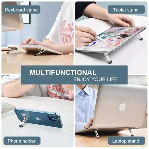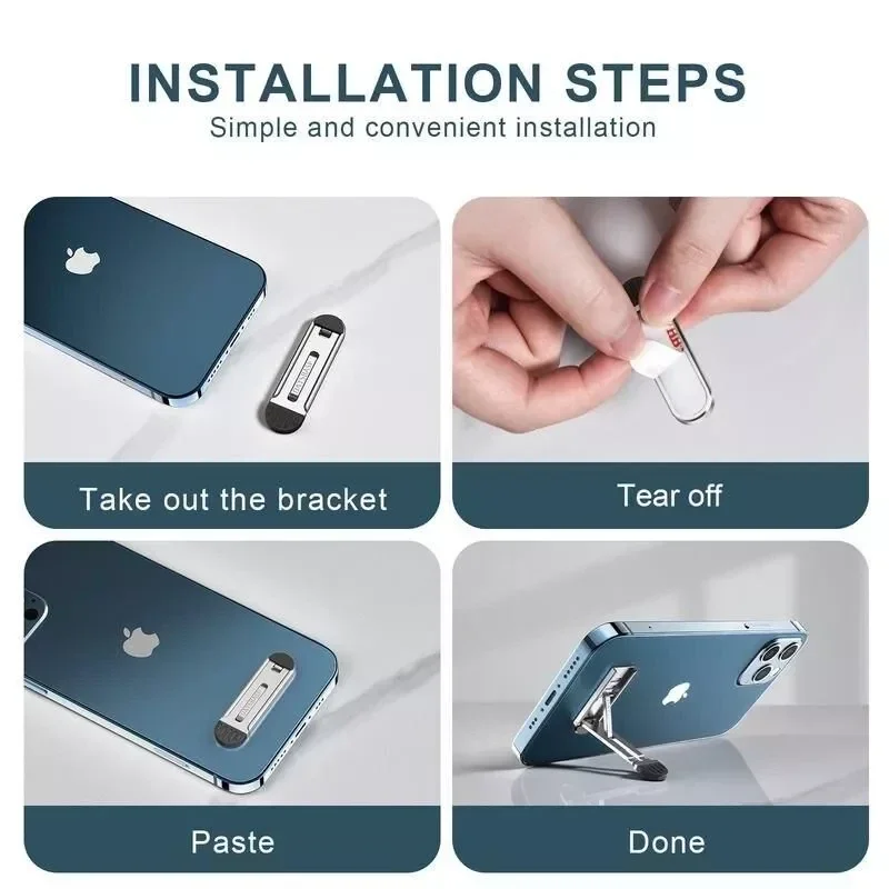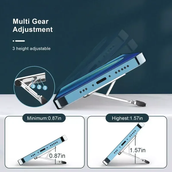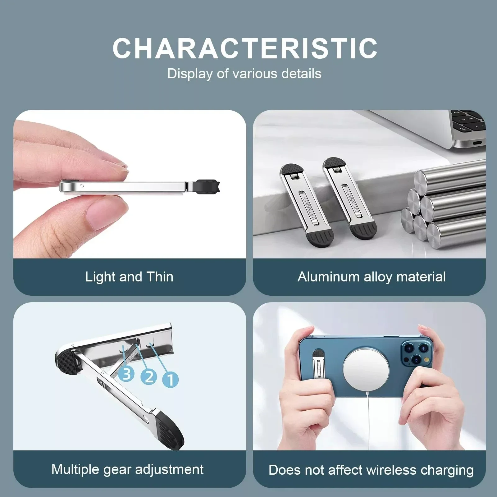 Introducing our sleek and versatile Portable Desktop Phone Holder, a must-have accessory for your iPhone 12, 13 Pro Max, Xiaomi, tablet, or any smartphone and tablet within 12 inches. Crafted from premium aluminum alloy, this invisible mini adhesive non-slip phone stand is both solid and durable, providing a secure grip for your device.