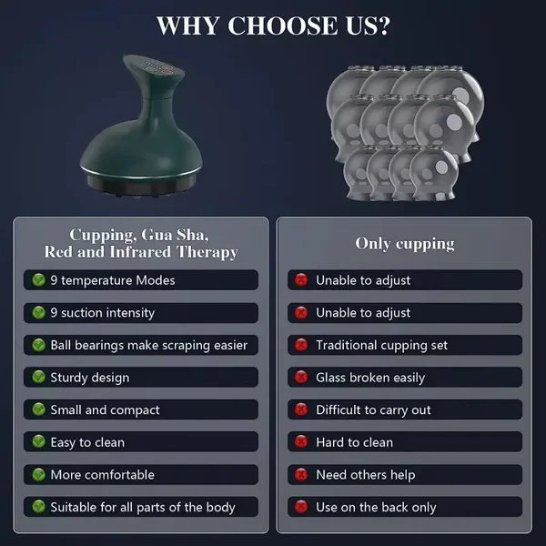 Experience the power of electric vacuum cupping combined with guasha scraping for a range of benefits: